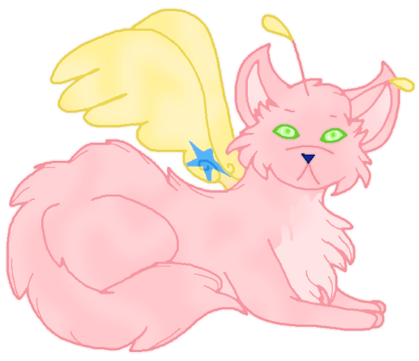 If you want to know what a Cat Creature is...it's what I dubbed the pink, yellow-winged cat you see here. She's my "non-realistic" fursona, Cali! She's a spirit
